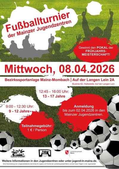 08.04. Fußballturnier der JuZe Ü13 (12.30 - 16.00 Uhr, 13 bis 17 Jahre, 1,00 Euro, mit Anmeldung)